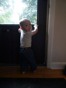 He also likes to point at things and say “da” which we think is him trying to say “that.” He says a “cheh” sound for cheers. He says “ma” increasingly and sometimes in my vicinity perhaps even referring to me. There is a “bah-oo” sound that seems to mean bottle.